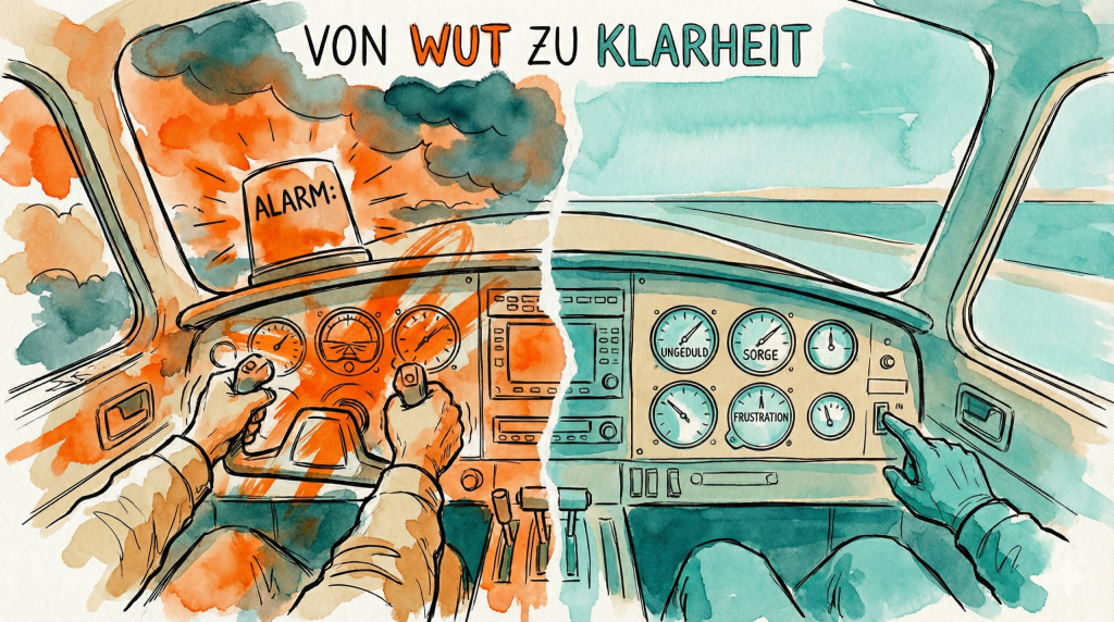 Sie weiß: Gefühle sind die Instrumente im Cockpit. Sie sind Botschafter ihrer Bedürfnisse. Aber das Instrument „Wut" ist viel zu ungenau. Das ist, als würde im Cockpit nur „Fehler" blinken. Damit kann man kein Flugzeug sicher landen.